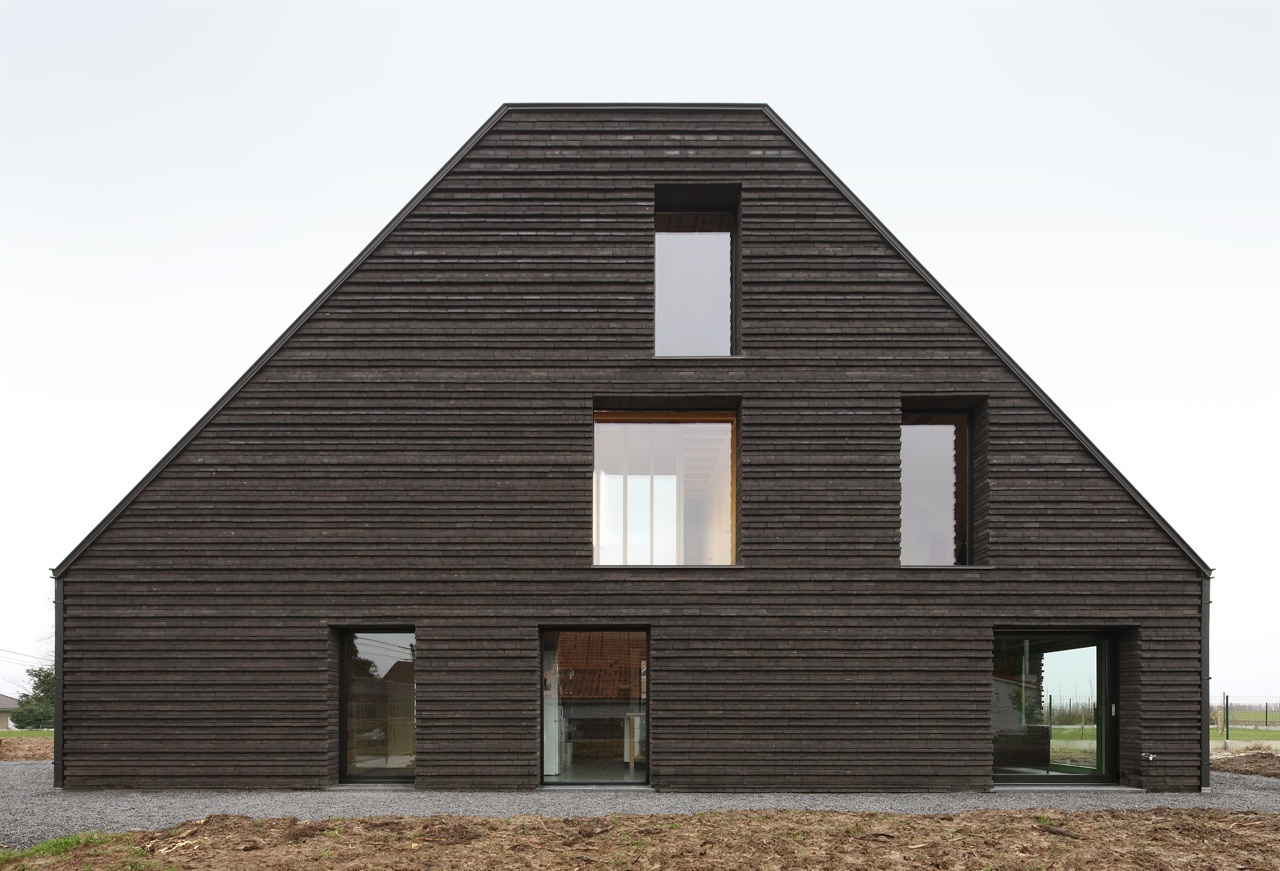 Door drie verschillende baksteenformaten te mengen, ontstaat een bijzondere textuur en gelaagdheid in de gevel. Een gebouw als een ruwbouw-ruïne, een massief geheel in te richten in plan en snede.